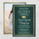 Compartilhe a alegria de um segundo grau ou formandos e convide a família e os amigos a celebrarem com estes anúncios personalizados de convite de festas verde, ouro e branco. (DICA DE IMAGEM: Uma maneira fácil de centralizar uma imagem exatamente como você deseja é recortá-la antes de carregá-la no site do Zazzle.) Este modelo formal inclui nomes de pais e formandos, assim como qualquer informação de sua escolha, como detalhes de celebração, honras especiais, título de grau, citação de inspiração favorita, novo endereço de formando, planos educacionais futuros ou posição de emprego. Toda a formulação é simples de personalizar. Design apresenta um fundo verde moderno, faux gold foil border & mortar conselho boné, elegante caligrafia branca, tipografia tradicional e uma foto de sua escolha, como uma fotografia de mais velho ou imagem da cerimônia de início. Observe que o ouro é impresso a cor, não a folha metálica. Estes cartões de anúncio de graduação são uma maneira moderna e chique de compartilhar sua celebração especial com a família e os amigos. Parabéns ao formando!