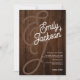 Um monograma moderno e ousado e um convite de casamento elegante, com nomes personalizados, com uma caligrafia manuscrita com marcador na vintage, a madeira rusticada castanha. Todas as cores de texto, nomes e fundo são personalizáveis. Um convite simples e minimalista. Adicione seu código qr para um tudo em um convite de casamento com rsvp, detalhes e mais informações.