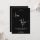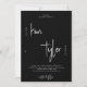 A tenda elegante escreveu um convite de casamento preto com um texto branco com nomes de noiva e noivo com script de caligrafia.