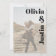 Um convite de casamento moderno, simples, ousado e elegante, com uma fonte ousada e sobredimensionada em preto e branco, com uma camada branca e duas fotos, adicione seu código QR para o rsvp, detalhes de casamento e muito mais. Todas as cores de texto, nomes e fundo são personalizáveis. Um convite simples e minimalista.
