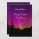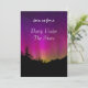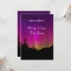 Um convite de festas cênico ao ar livre. Uma bela paisagem noturna. As montanhas e árvores aparecem como uma silhueta preta contra uma exibição brilhante e vívida de luzes de norte brilhando acima. Este excitante céu noturno brilha em rosa, roxo e amarelo.