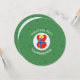 For your Christmas party, this round invitation features an angel wearing the Norwegian flag. She flies inside a white, fractal circle of squiggly squares, surrounded by a background fractal of green squiggly squares. Add a name and year to the front to personalize. Or, change the text to whatever you like. Party information is on the back for the details of your event.