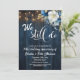 Este Convite de Aniversário do Casamento tem uma elegante caligrafia escrita completada por maravilhosas madeiras azuis, luzes de cordas de jardim e floral azul branco com brilho dourado. Você pode personalizar este Convite com seus detalhes de aniversário de casamento.