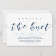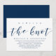 Tema azul-marinho moderno e sofisticado, cartão de convite de celebração de casamento (Nós Amarrámos). É perfeito para a sua celebração casual de casamento às margens de um lago.