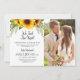 Este convite para comemoração de casamento apresenta um quadro vertical fotográfico e é acentuado com um gráfico aquoso de girassóis elegantes e verde. Isto é perfeito para anunciar o seu casamento e convidar a sua família e amigos a participar de uma recepção ou celebração.