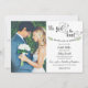 Anuncie aos seus amigos e familiares que se casou numa cerimónia privada e, em seguida, convide-os para uma celebração de recepção pós-casamento / recepção. Personalize com as suas informações. Apresentando a expressão "Nós amarrámos o laço" num script delicado com folhas verdes desenhadas à mão.