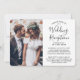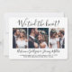 Convide familiares e amigos para uma recepção de casamento simplesmente elegante com este convite de colagem de 4 fotos "we tied the knot" (nós nos casamos) moderno e sofisticado. Todo o texto é simples de personalizar para qualquer celebração de recepção, incluindo uma festa pós-fuga, cerimônia de renovação de votos, casamento sequencial, 1º aniversário, happy hour ou jantar. Personalize-o para incluir os detalhes de sua escolha, como data do casamento, código de vestimenta, RSVP, site, etc. (DICA DE COLOCAÇÃO DE IMAGEM: Uma maneira fácil de centralizar uma foto exatamente como você quer é cortá-la antes de fazer o upload para o site da Zazzle.) O design moderno minimalista preto e branco apresenta quatro fotos do casal recém-casado, caligrafia manuscrita na moda e tipografia estilo máquina de escrever. Quer você tenha fugido devido à pandemia de COVID ou tenha reduzido para uma minicermônia ou microcasamento menor e mais íntimo, a festa do "feliz