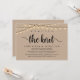Marque o começo de sua eternidade com elegância rústica usando nossa casa e cordas da vila luzes kraft fundo temed, carta de convite para celebração de elopementos de casamento, "Nós amarramos o nó". Perfeito para os casais estendendo sua alegre ocasião, este convite exude sofisticação com uma sugestão de brincadeira, definindo o palco para um evento memorável. Adorado com um tema design de roteiro moderno de eterno, ele adiciona um toque de encanto refinado às suas festividades. Feito por TeeshaDerrick, este convite promete capturar maravilhosamente sua história de amor.