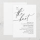 Marque o começo de sua eternidade com elegância usando nosso romântico negro e branco moderno elopemento de casamento alegremente após o convite para comemoração do janto de almoço, "Nós amarramos o nó". Perfeito para os casais estendendo sua alegre ocasião, este convite exude sofisticação com uma sugestão de brincadeira, definindo o palco para um evento memorável. Adorado com um tema design de roteiro moderno de eterno, ele adiciona um toque de encanto refinado às suas festividades. Feito por TeeshaDerrick, este convite promete capturar maravilhosamente sua história de amor.