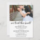Anuncie aos seus amigos e familiares que vocês se casaram! E então convide-os para a celebração da recepção de casamento. "nós amarrámos o nó!" em letra moderna. Personalize com sua foto e informações detalhadas para uma celebração pós-casamento