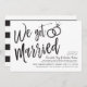 Depois do grande dia do casamento e os anéis são trocados, convide seus convidados mais honrados para um brunch de casamento poste. Este convite contém as palavras "Nós nos casamos" em letras de rico. Perto deste lado estão dois anéis de casamento. Abaixo deste gráfico está um espaço para suas próprias palavras e informações para seu evento de casamento postado. O verso contém um padrão listrado preto e branco para complementar o aspecto do tema preto/branco do lado frontal. Todos os elementos deste convite estão desbloqueados e ajustáveis, por isso, aprecie ser criativo e fazer-o seu.