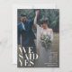 Este anúncio de casamento em preto e branco é uma ótima maneira de informar aos amigos e familiares que vocês fugiram para se casar, tiveram uma cerimônia secreta ou casamento íntimo e querem comemorar com eles! A frente do cartão é projetada para exibir sua foto favorita na orientação vertical, com as palavras "Nós Dissemos Sim" na parte inferior esquerda em uma tipografia de revista de moda atemporal e elegante, em branco suave. Seus nomes, data e local do casamento aparecem na parte inferior direita em uma fonte moderna e sem serifa. O verso do cartão permite que você digite a data e local do casamento e personalize o cartão com todas as informações relevantes sobre a recepção pós-casamento. Ele também apresenta uma segunda foto do casamento, desta vez uma imagem horizontal. Este é um modelo de design e é muito fácil de personalizar de acordo com as suas necessidades. NOTA DO CRIADOR: O "revestimento de velino" neste produto é um efeito digital. Entre em contato com o designer para obter produtos correspondentes. Direitos autorais de Anastasia Surridge para Anastasia Designs, todos os direitos reservados.