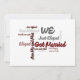 Este convite/anúncio do Elopement apresenta um design de texto de nuvem de palavras que contém diferentes formas de dizer 'Nós fugimos'! A palavra principal é 'Nós' e as outras palavras e frases incluem: 'Apenas Eloped', 'Are Casried', 'Are Mr and Mrs', 'Love Um Ao Outro', Hitch Hitch, 'Not wait', 'Are In Love, 'Are Happy', 'Has Casried', etc. Para que amigos e familiares saibam que você amarrou o nó, e são felizes. A parte de trás do convite é um modelo e permite que você anote seu casamento e também convide amigos e família para uma recepção. Todos os campos são facilmente personalizáveis ou excluídos. As cores do texto são lindas cinzas prateadas, com sombras de cor rosa e marrom.