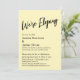 Este simples design apresenta uma fonte moderna de escrita manual usada para criar uma leitura gráfica "Estamos Eloping" sobre um fundo sólido. O texto editável aparece em uma fonte simples sans-serif que você pode alterar se desejar. Todas as camadas foram deixadas destravadas, dando-lhe o máximo controle de design. Reposicionar ou redimensionar elementos, se preferir, e alterar a cor de fundo conforme necessário. 105 //