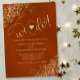 Este belo convite para o casamento é simples, moderno, elegante e divertido. Ele apresenta uma bela laranja ferrugem e design de ouro com fraldas de folhas falsas de ouro herdadas e letras modernas de escrita: Nós Fazemos! com um coração bonito posicionado entre as palavras. Romântico, clássico e glamour, ainda que mesquinho e alegre, este convite de casamento é perfeito para uma cerimônia casual ou formal.