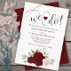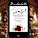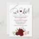 Este belo convite de casamento bócio apresenta um conjunto de rosas pintados à mão em tons de vermelho, burgundy e rosa-pincel, juntamente com folhas de eucalipto e verde-jardim. O título está escrito em letras de rico e lê: "Fazemos! com um coração bonito e cor de burlu entre nós. Este convite é a combinação perfeita entre moderno e eterno - é ao mesmo tempo fazer romântico e caprichoso perfeito para uma cerimônia formal ou casual.