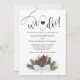 Este belo convite para o casamento apresenta um design rústico com um aglomerado de pinecones e galhos de pínus amarrados com um arco de cebola branca. O título está escrito em letras de rico e diz: "Fazemos! com um coração bonito entre as ninharias. A parte de trás é uma cor verde da floresta marmoreada. Romântico, caprichoso e elegante, este convite é perfeito para um casamento de inverno, ao ar livre ou de Natal.