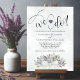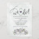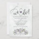 Estes belos convites para o casamento apresentam um design bócio rústico com um buquê de folhas de cor d'água pintadas à mão, de eucalipto com ranhuras de lavanda e jardim, amarradas com um arco de cetim branco. A elegante letra moderna diz "Fazemos!" com um coração roxo, lavanda ou empoeirado entre as palavras. Whimsical, fofo e divertido, esses convites certamente agradam!