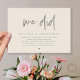 Anuncie com elegância o seu felizes para sempre com nosso cartão de convite de casamento íntimo com tema moderno, "We Did". Feito sob medida para casais que continuam sua história de amor, este convite atinge um equilíbrio perfeito de sofisticação e charme, preparando o cenário para um evento inesquecível. Com um design de letra minimalista contemporâneo moderno, ele adiciona um toque de graça atemporal ao seu dia especial. Criado pela talentosa TeeshaDerrick, este convite é uma expressão elegante do seu amor duradouro.