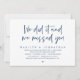 Convite de casamento com tema Moderno Azul Marinho (Nós fizemos isso e sentimos sua falta). É perfeito para a sua recepção de casamento às escuras / festa de celebração pós-casamento. Adicione seus detalhes em fonte / letra preta correspondente.