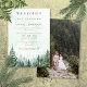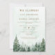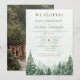 Este convite de casamento rústico e elegante com floresta de pinheiros em aquarela pode ser personalizado com suas informações em tipografia moderna e uma foto especial no verso. Criado por Thisisnotme©