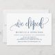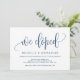 Este cartão de convite de design de caligrafia moderna temática (nós fugimos) é perfeito para a celebração/ anúncio da fuga de casamento. Adicione seus detalhes na fonte / letra azul-marinho correspondente.