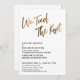Convide seus convidados para a celebração do seu casamento com a ajuda destes simples cartões de convite. Para o cabeçalho, usei uma fonte casual, moderna e escrita à mão para criar uma camada gráfica de tipografia lendo "Nós Ligamos o Nó". Esta imagem foi embelezada com um efeito suave de folha de ouro para um resultado festivo. Preencha os vazios modelo com seus detalhes para personalizar o design. Todas as camadas foram deixadas destravadas para que você também possa clicar para personalizar e reposicionar o texto ou até mesmo alterar os tamanhos ou fontes. Altere o plano de fundo para qualquer cor que você preferir. Alternativamente, você pode optar por adicionar uma imagem ao verso. Por favor, não hesite em contactar para obter assistência em matéria de personalização. 105 //
