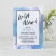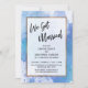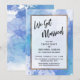 Sobre um fundo artístico desordenado que apresenta tinta salpicada em tons de azul, roxo e turquesa, coloquei um retângulo opaco bordeado em ouro falso para compensar o texto. A parte superior apresenta uma camada de tipografia simples que diz "Nós Nos Casamos" em uma escrita moderna e casual. Use os campos do modelo para adicionar seus próprios detalhes. Todas as camadas foram adicionadas separadamente e deixadas desbloqueadas para lhe dar controle de design. // 105 //