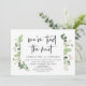 Script preto moderno, tema de verão com folhagem verdejante, cartão de convite de casamento íntimo (Nós nos casamos). É perfeito para a recepção do seu casamento íntimo / festa de celebração pós-casamento. Adicione seus detalhes em fonte preta correspondente.