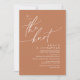 Marque o início do seu para sempre com elegância usando nosso convite de casamento tema cobre marrom terracota rústico estético contemporâneo romântico para lua de mel "Nós nos casamos". Perfeito para casais que desejam estender sua ocasião alegre, este convite exala sofisticação com um toque de alegria, preparando o cenário para um evento memorável. Adornado com um tema de design de roteiro moderno atemporal, ele adiciona um toque de charme refinado às suas festividades. Criado por TeeshaDerrick, este convite promete capturar lindamente a sua história de amor.