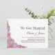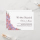 Elegante convite de recepção pós-casamento com flores rosa e lavanda para celebrar sua união recente.