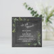 Este convite de recepção de casamento ou festa apenas para recepção apresenta um fundo de quadro-negro, bem como um emblema sobreposto de quadro-negro quadrado com bordas, entre os quais coloquei buquês desalinhados de folhagens em aquarela. Usando uma fonte de letra elegante, moderna e com curvas, eu representei as palavras "nos casamos" no topo, um cabeçalho para seus detalhes pessoais. Usando a mesma fonte "elegante", eu coloquei um gráfico com a inscrição "sr & sra" no verso. Todas as camadas foram adicionadas separadamente e deixadas destrancadas para que você possa alterar o que desejar. // 57 //