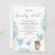 Prepare-se para celebrar a chegada do seu pequeno com o encantador Convite para Chás de fraldas Esperar Rapaz. Este adorável convite apresenta um urso doce segurando balões, tocado por estrelas deliciosas e detalhes elegantes de azul e ouro, fazer a forma perfeita de convidar amigos e família para o seu evento especial. O convite mostra um urso bonito segurando um monte de balões, acrescentando um toque divertido e carinhoso ao seu anúncio de chá de fraldas. Detalhes azuis, estrelas e balões decoram o cartão, trazendo um sentimento festivo e comemorativo ao convite. O texto personalizável permite que você inclua todos os detalhes essenciais de seu evento, como informações de data, hora, local e RSVP. Perfeito para Chás de fraldas Meninos: O esquema de cor azul e dourada é ideal para celebrar a chegada de um bebê.