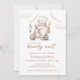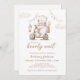 Podemos Antecipar o convite cor-de-rosa para Chá de fraldas de Urso Polar de Espera apresenta uma ilustração fofinha de um urso polar com um elegante tratamento do tipo guião. Personalize-o com os detalhes do evento. Um belo convite, perfeito para o seu evento!