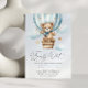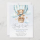 baby boy azul, tema floral simples com letra de script, podemos esperar muito tempo para o modelo de convite de chá de fraldas. O texto e as cores podem ser editados.