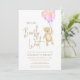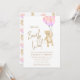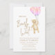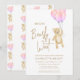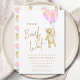 Este encantador convite de chá de fraldas da menina apresenta balões cor-de-água rosa e um ursinho de pelúcia com as palavras "Nós podemos esperar mais cedo" na tipografia do na moda. É facilmente personalizável. Original Watercolor © Michele Davies.