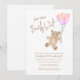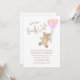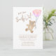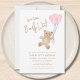 Este encantador convite de chá de fraldas da menina apresenta balões cor-de-água rosa e um ursinho de pelúcia com as palavras "Nós podemos esperar mais cedo" na tipografia do na moda. É facilmente personalizável. Original Watercolor © Michele Davies.