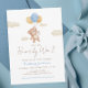 Podemos Antecipar o convite para Chá de fraldas do Urso de Teddy apresenta uma bela ilustração de um urso flutuante com um elegante tratamento de tipo script. Personalize-o com os detalhes do evento. Um belo convite, perfeito para o seu evento!