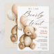 Este suave e caprichoso convite para o chá de fraldas "We Can Barly Wait" apresenta um ursinho pintado de peluche de aquarela segurando balões pastéis, perfeito para acolher um pequeno. O retorno de correspondência inclui um código de QR digitalizável para acesso ao registro de presentes. Tonalidades neutras e caligrafia delicada tornam-no ideal para a menina, o garoto ou as celebrações neutras em relação ao gênero. Uma escolha doce e aconchegante para a floresta, a rústica ou os chás de fraldas modernos.