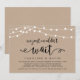 Lindas Luzes de Corda de Fazenda Rústica Moderna, fonte Script Negra em Fundo de Papel Kraft, Anúncio de Casamento às Escondidas, cartão de convite (Nós simplesmente não conseguimos esperar). Isso é perfeito para o seu casamento e festa de celebração pós-casamento. Adicione seus detalhes na fonte / letra correspondente. #TeeshaDerrick