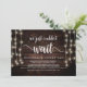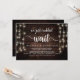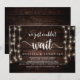 Nós simplesmente não conseguimos esperar, Anúncio de Casamento Fugitivo / Convite, em Madeira Rústica de Fazenda, design de Luzes de Corda. Isto é perfeito para a recepção do seu casamento e festa de celebração pós-casamento. Adicione seus detalhes em fonte / letra correspondente.