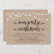 Lindas Luzes de Corda de Fazenda Rústica Moderna, fonte Script Preta em Fundo Kraft Marrom, Anúncio de Casamento às Pressas, cartão de convite (Nossa Festa Continua). Isto é perfeito para a recepção do seu casamento e festa de celebração pós-casamento. Adicione seus detalhes na fonte / letra correspondente.