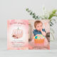 Este doce convite de festas apresenta uma foto vertical e é acentuado com uma abóbora e flores aquáticas e primeiro aniversario dourado. Esta design é perfeita para uma comemoração de outono.