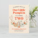 Nosso Pequeno Pumpkin Está Virando Dois Convites de aniversário Celebra sua abóbora com este design com uma pata de abóbora pintada manualmente e uma inscrição personalizada.
