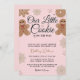 "Nossa Pequena Cookie está no Caminho", convite de chá de fraldas cor-de-rosa com adorável gengibre design. Perfeito para um chá de fraldas de Natal aconchegante.