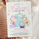 Um belo ajustado de aniversário de meninas para uma Princesa! Design apresenta um fundo branco clássico, uma coroa princesa, cavalo e carruagem, varinha mágica, cara de relógio de ouro falso, camundongos fofinhos, abóboras, um vestido de vestido de bola e estrelas. O modelo de aniversário moderno é fácil de personalizar usando o modelo fornecido.