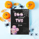 Este convite de festas segundo aniversário captura a essência de uma comemoração incrivelmente divertida. O fundo negro, a fonte assustadora e as figuras fantasmagóricas criativamente integradas na palavra "Boo" combinam-se para criar um convite que promete uma experiência única e memorável para o receptor e para o jovem celebrante. Todos os elementos do design podem ser editados para torná-lo exclusivamente seu!