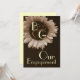 Este design com seu girassol de creme em um fundo do chocolate é uma maneira elegante e belamente floral de segurar seus convites do noivado. Todo o texto é customizável. Você pode jogar com papéis diferentes para obter efeitos diferentes. Eu recomendo o papel metálico hued ou de prata do gelo que dá a seu convite um efeito shimmery especial. Aprecie seu dia especial!