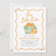 Nosso convite de aniversário de laranja com xadrez laranja.