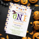 Este convite divertido e adorável para o tema do Dia das Bruxas. convite de festas personalizado do primeiro aniversario do Dia das Bruxas ( Adicionar sua personalização: Data da Festa, Hora, Local e Informações de RSVP)